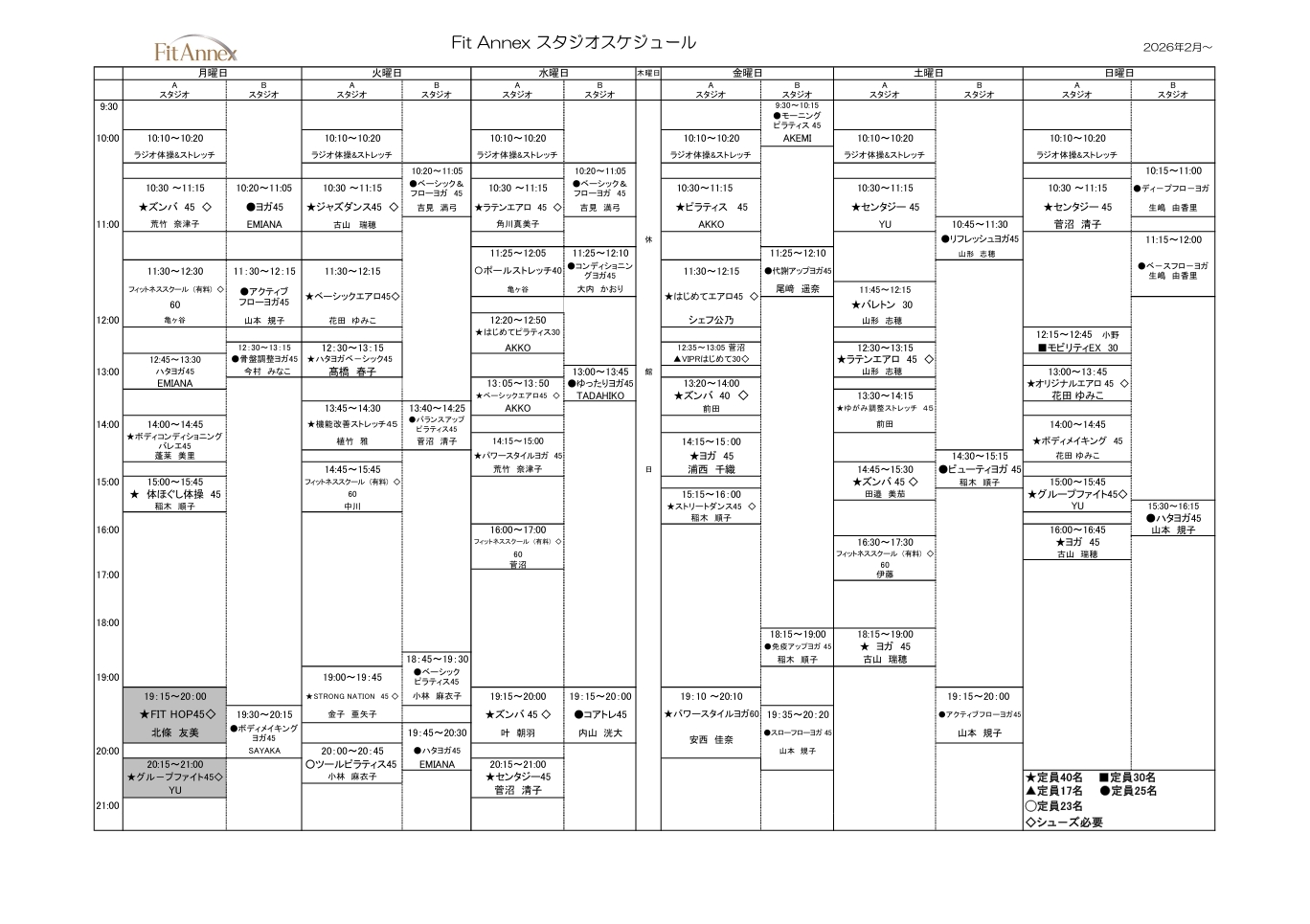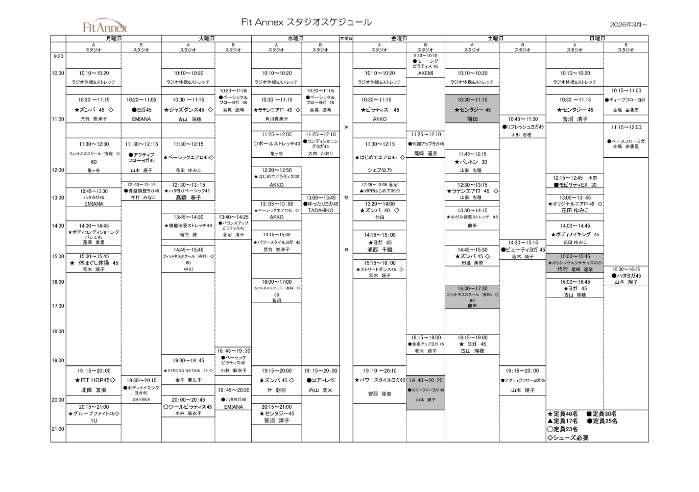 ヨガとピラティスの要素を組み合わせ、明るく軽快な音楽に合わせて行うクラスです。 |